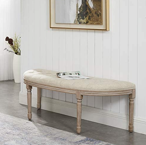 APPROACHABLE PRICE & STYLE: Finished in neutral colors and accents, this French Country style bench can go with many other kinds of decor! From classic, preppy to cottage chic -this piece fits like a glove with most any style.